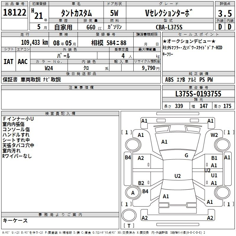Daihatsu Tanto, 2009 года - Лот№18122 ★3.5