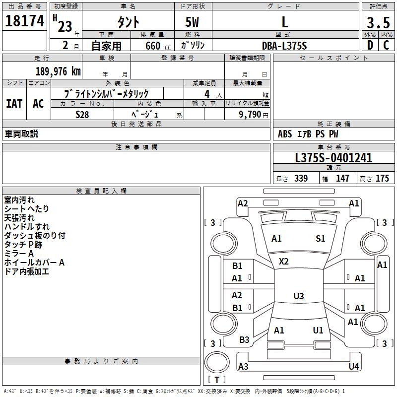 Daihatsu Tanto, 2011 года - Лот№18174 ★3.5