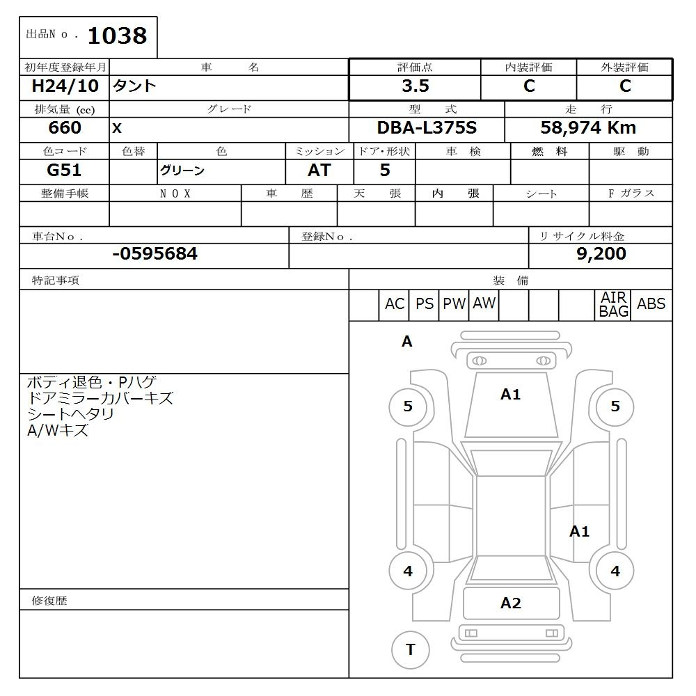 Daihatsu Tanto, 2012 года - Лот№1038 ★3.5