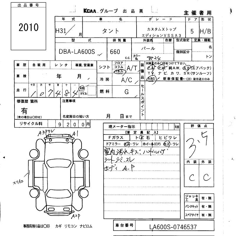 Daihatsu Tanto, 2019 года - Лот№2010 ★3.5