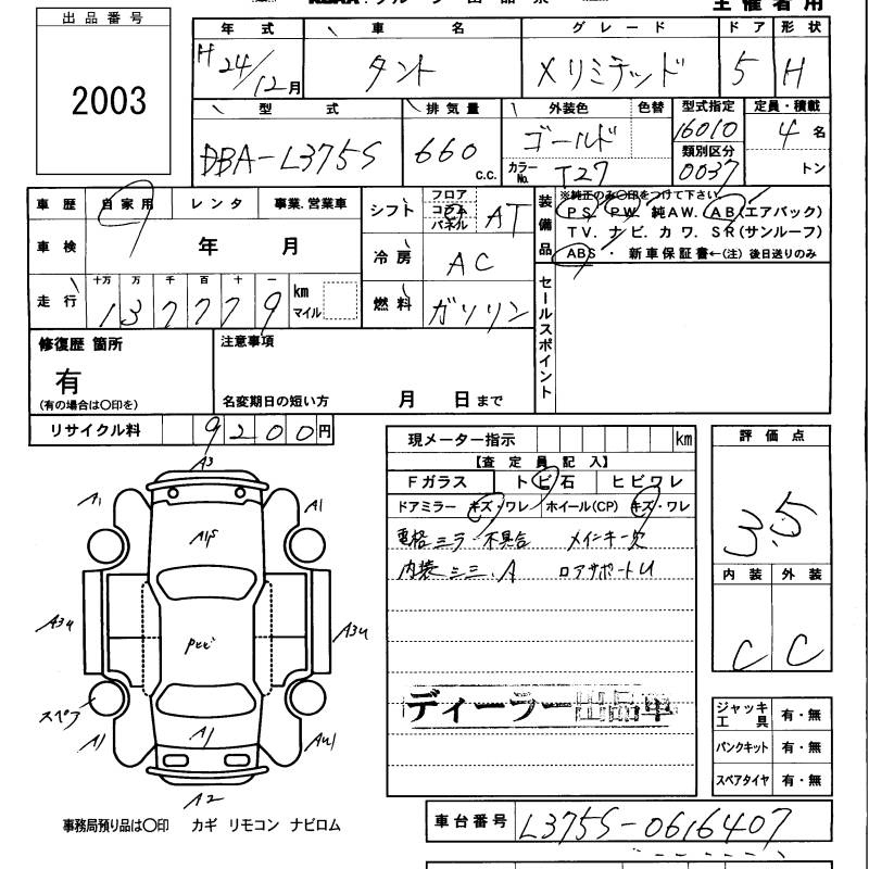 Daihatsu Tanto, 2012 года - Лот№2003 ★3.5