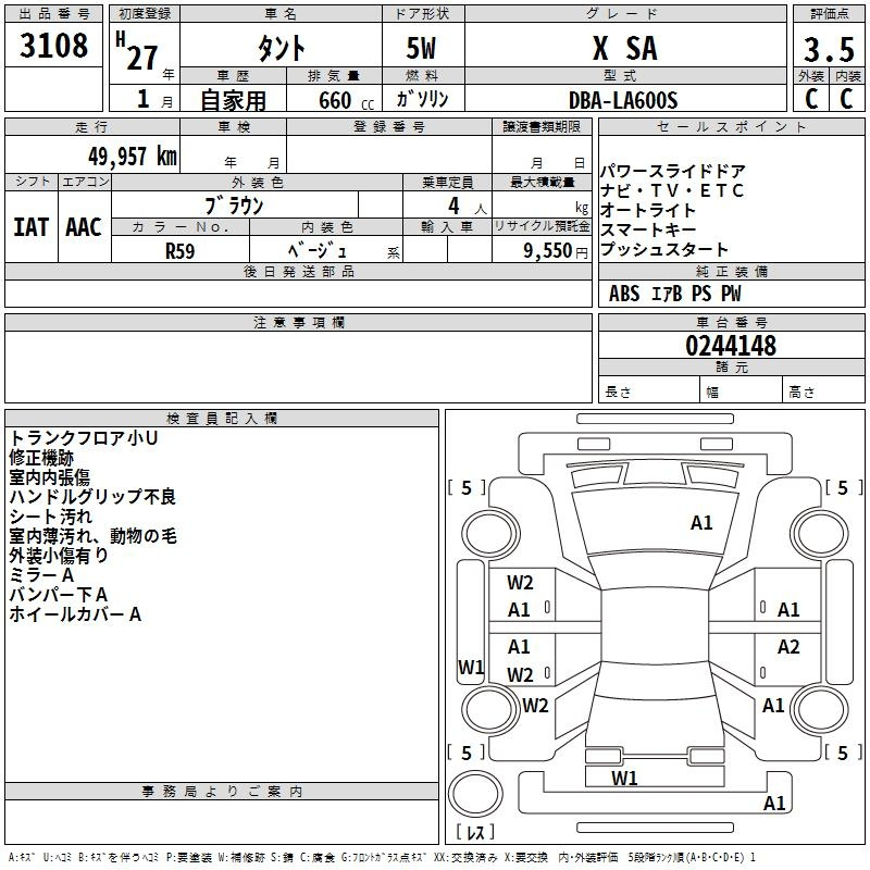Daihatsu Tanto, 2015 года - Лот№3108 ★3.5