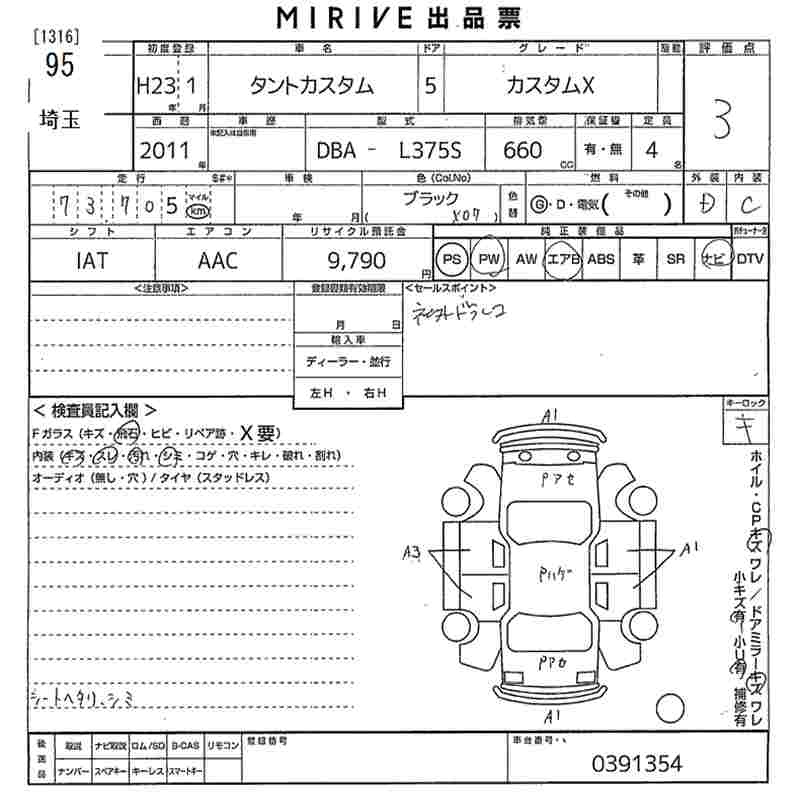 Daihatsu Tanto, 2011 года - Лот№95 ★3
