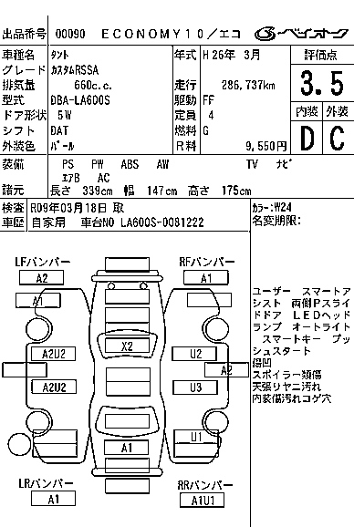 Daihatsu Tanto, 2014 года - Лот№90 ★3.5