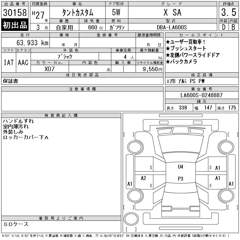 Daihatsu Tanto, 2015 года - Лот№30158 ★3.5