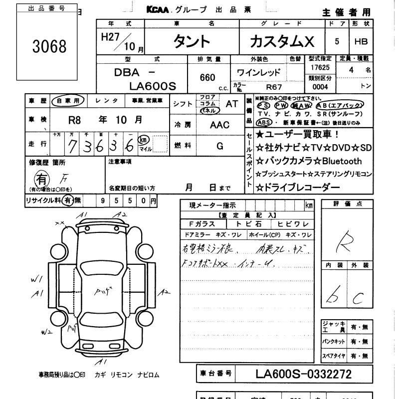 Daihatsu Tanto, 2015 года - Лот№3068 ★R