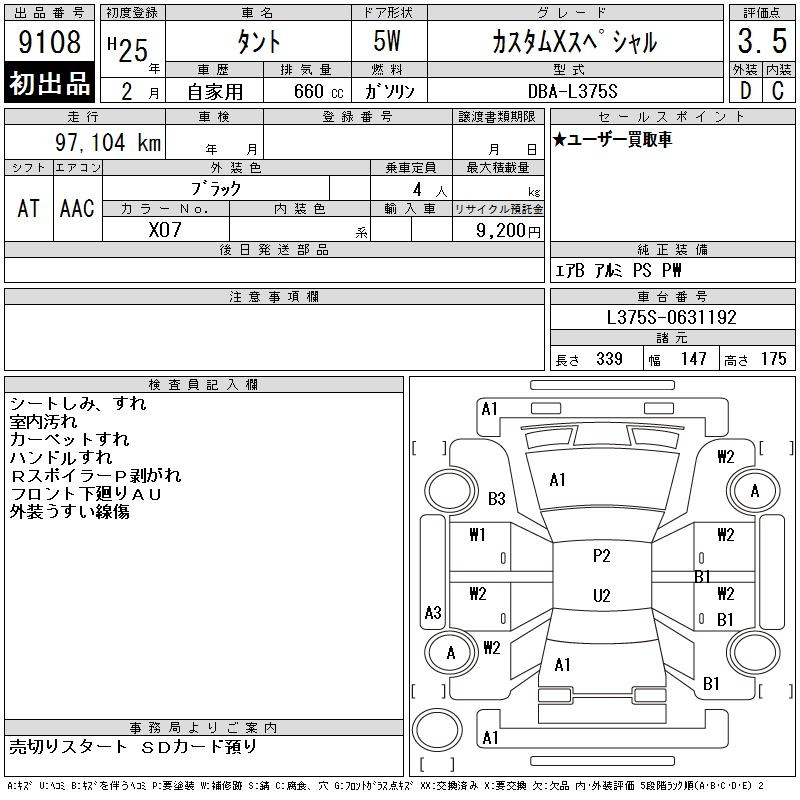 Daihatsu Tanto, 2013 года - Лот№9108 ★3.5