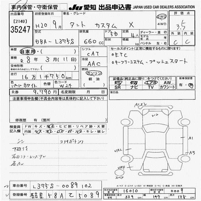 Daihatsu Tanto, 2008 года - Лот№35247 ★3.5