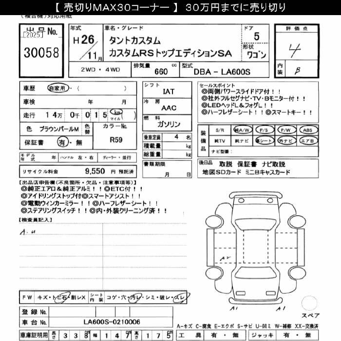 Daihatsu Tanto, 2014 года - Лот№30058 ★4