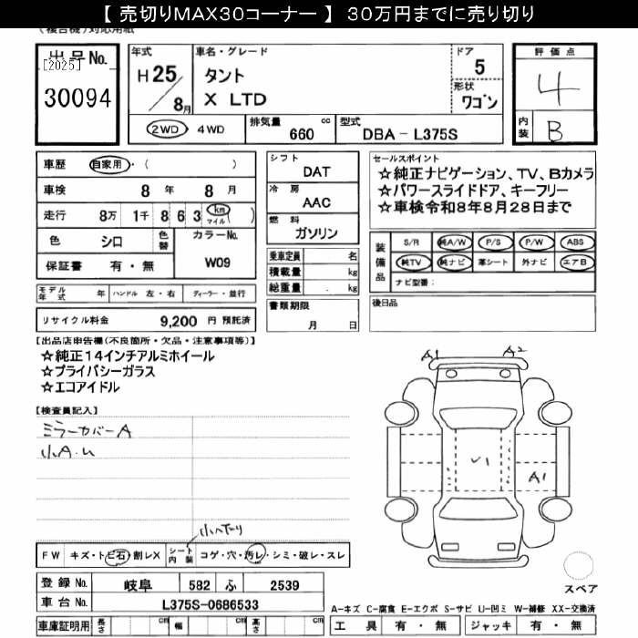Daihatsu Tanto, 2013 года - Лот№30094 ★4