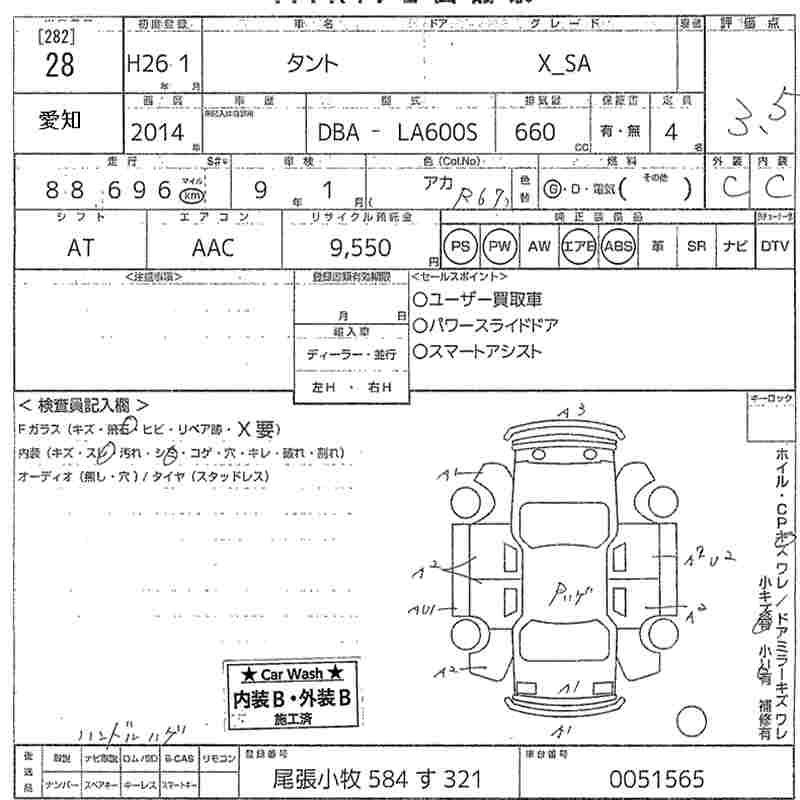 Daihatsu Tanto, 2014 года - Лот№28 ★3.5
