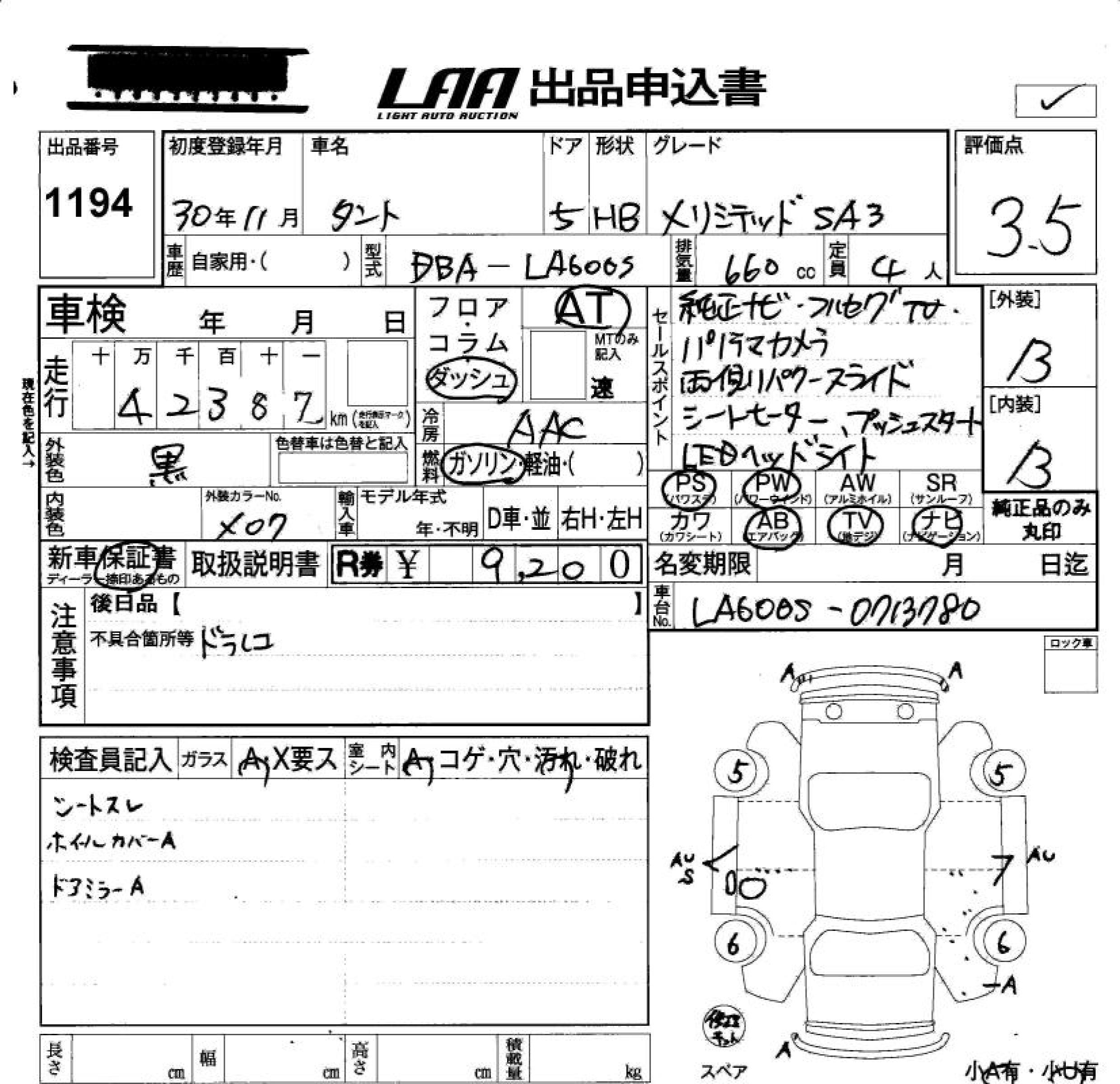 Daihatsu Tanto, 2018 года - Лот№1194 ★3.5