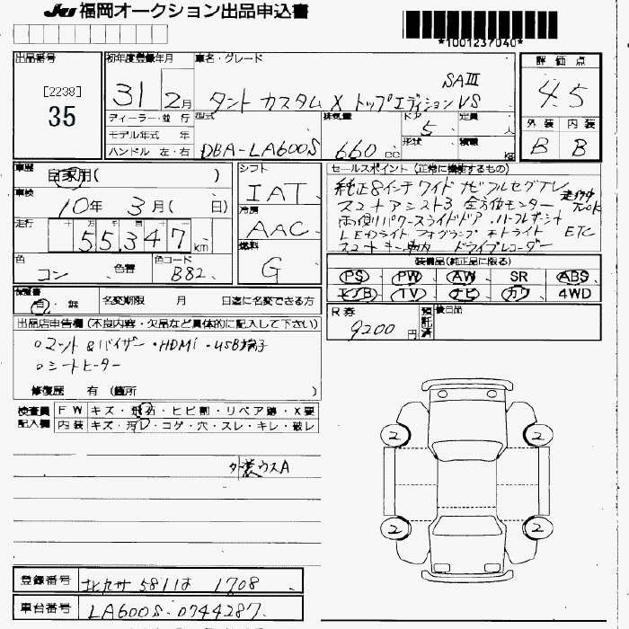 Daihatsu Tanto, 2019 года - Лот№35 ★4.5