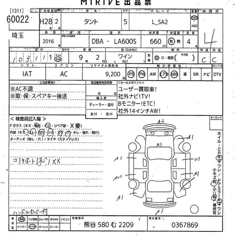 Daihatsu Tanto, 2016 года - Лот№60022 ★4
