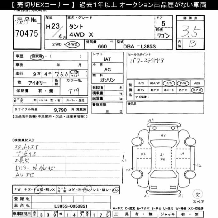 Daihatsu Tanto, 2011 года - Лот№70475 ★3.5