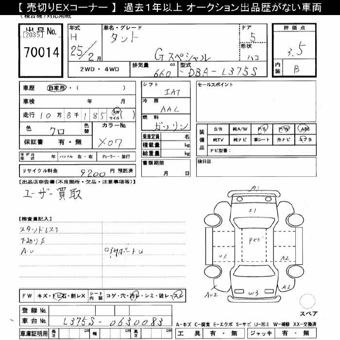Daihatsu Tanto, 2013 года - Лот№70014 ★3.5