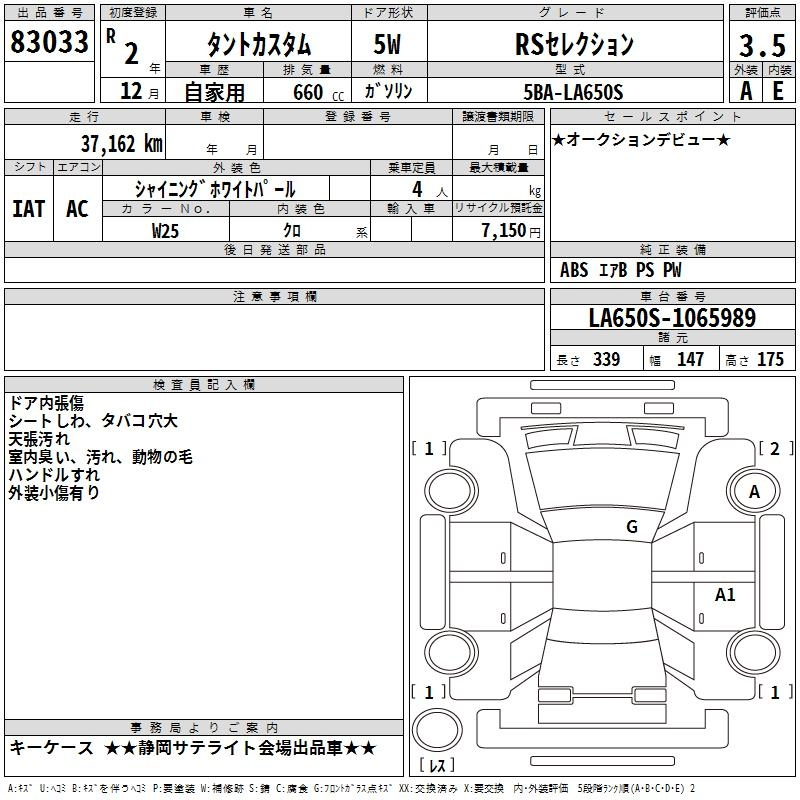 Daihatsu Tanto, 2020 года - Лот№83033 ★3.5