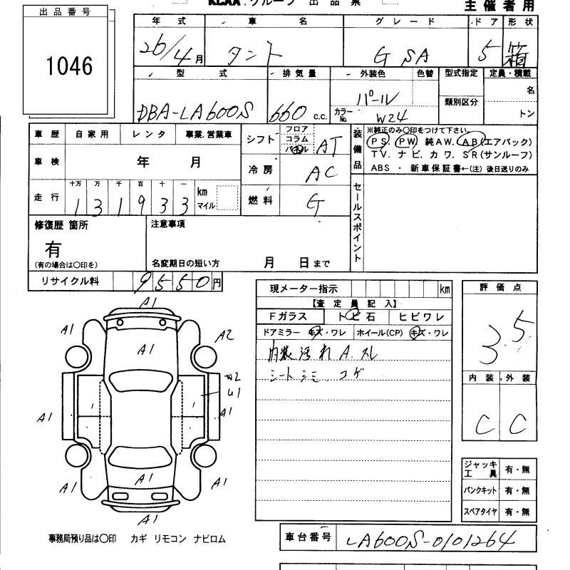Daihatsu Tanto, 2014 года - Лот№1046 ★3.5