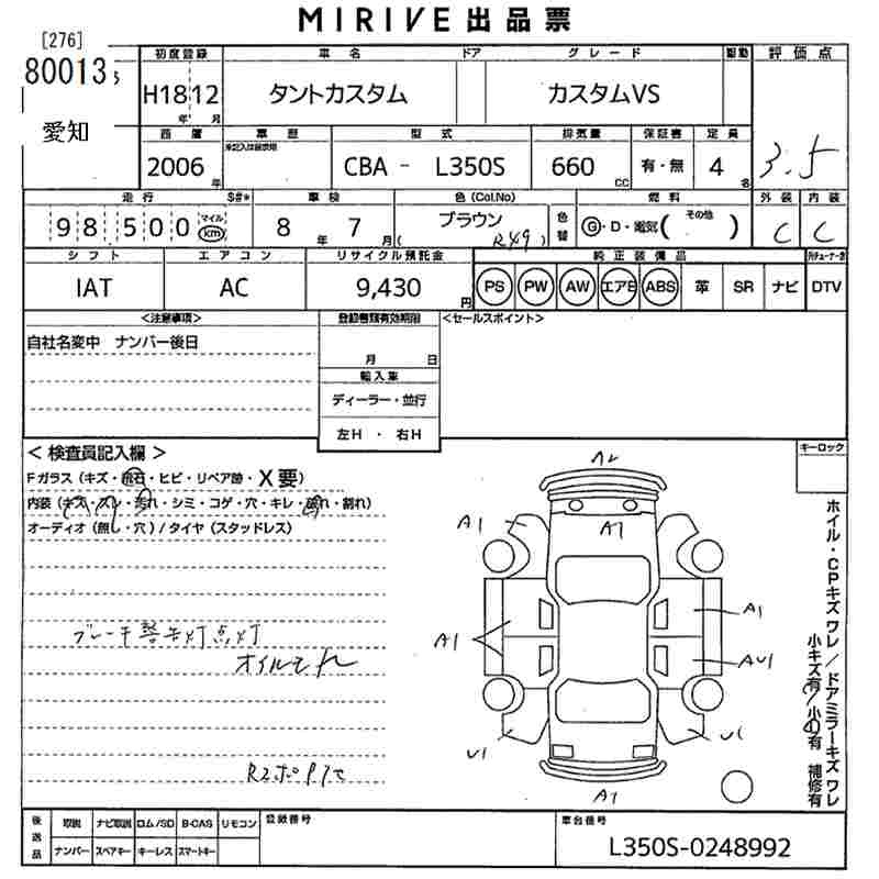 Daihatsu Tanto, 2006 года - Лот№80013 ★3.5