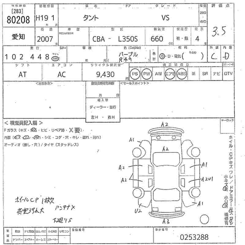 Daihatsu Tanto, 2007 года - Лот№80208 ★3.5