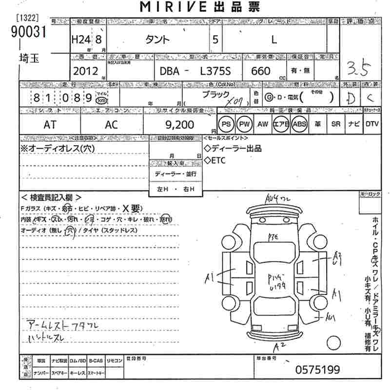 Daihatsu Tanto, 2012 года - Лот№90031 ★3.5