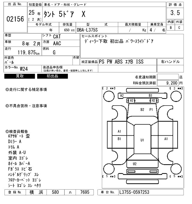 Daihatsu Tanto, 2013 года - Лот№2156 ★3.5