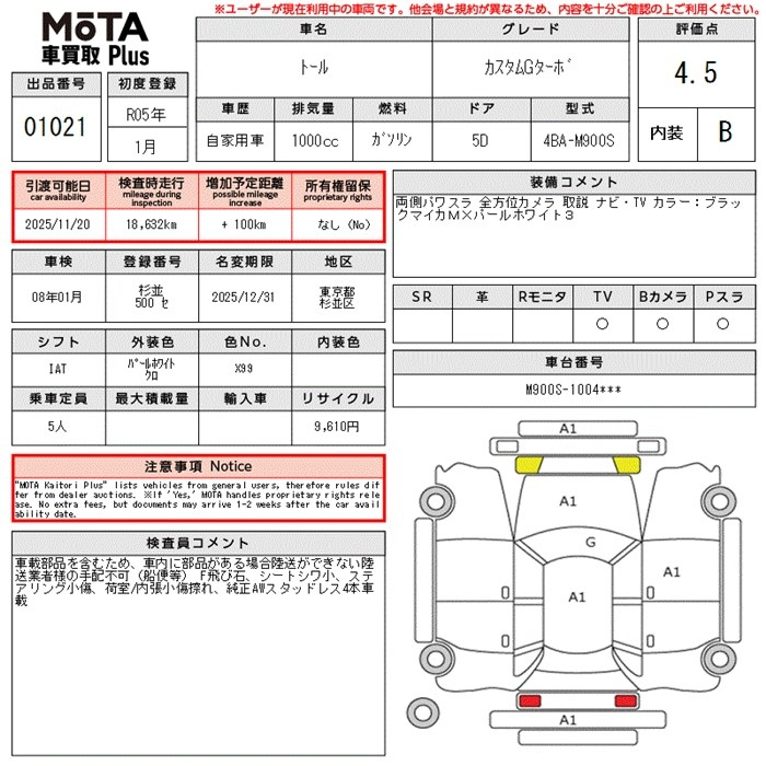 Лот№1021 12 Ноября 2025 года MOTA Kuruma Kaitori