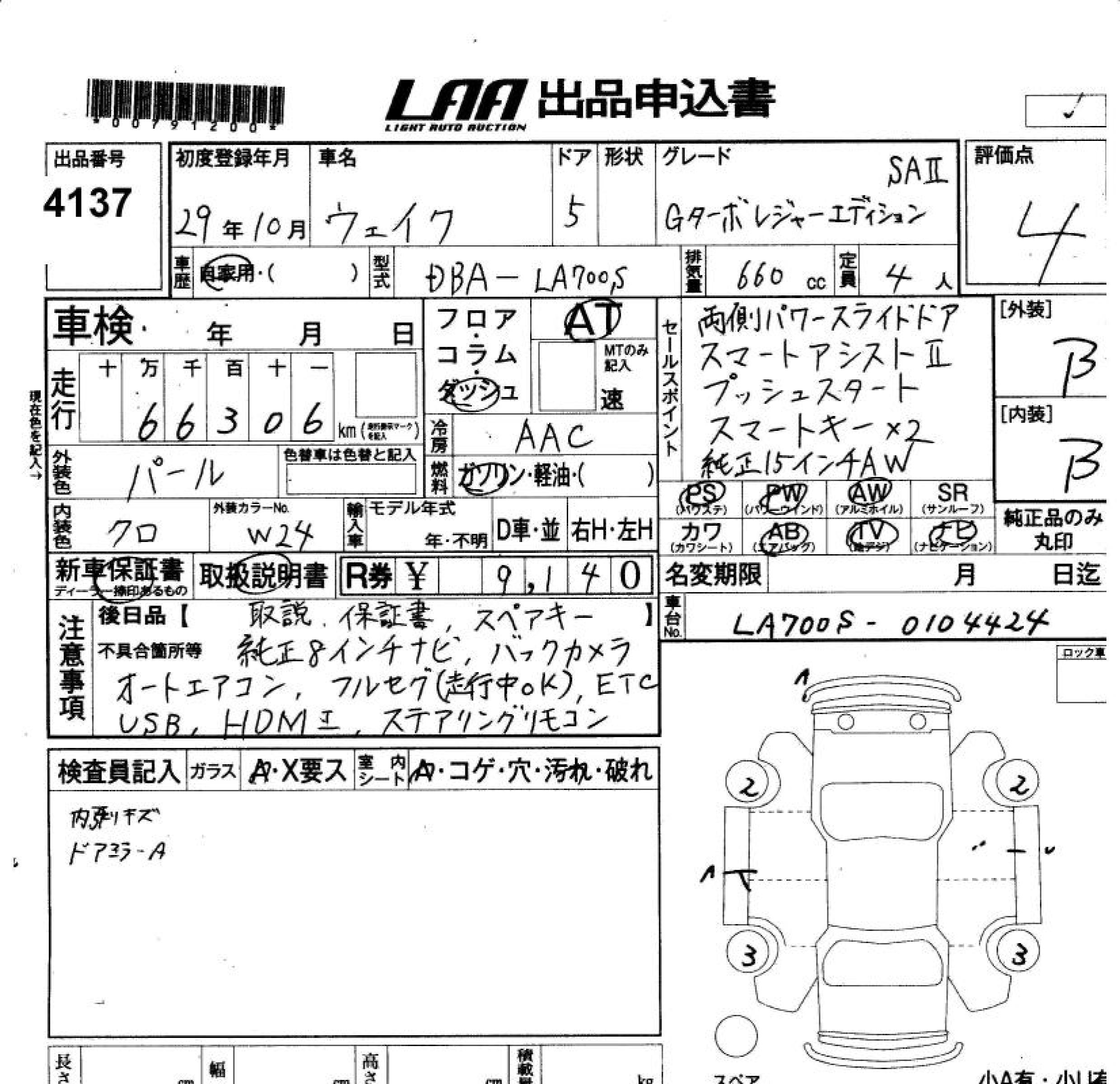 Daihatsu Wake, 2017 года - Лот№4137 ★4