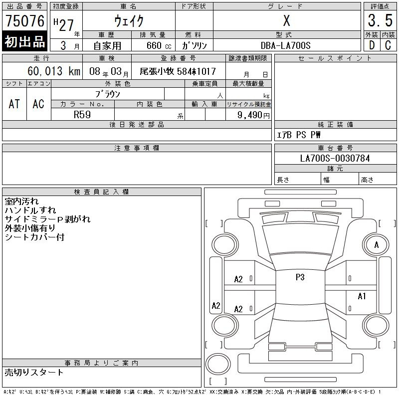 Daihatsu Wake, 2015 года - Лот№75076 ★3.5