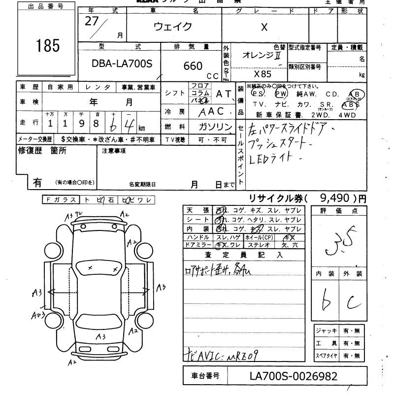 Daihatsu Wake, 2015 года - Лот№185 ★3.5
