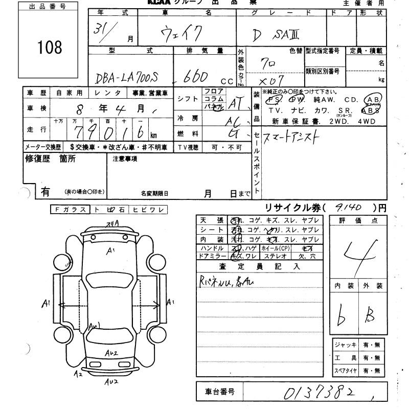 Daihatsu Wake, 2019 года - Лот№108 ★4