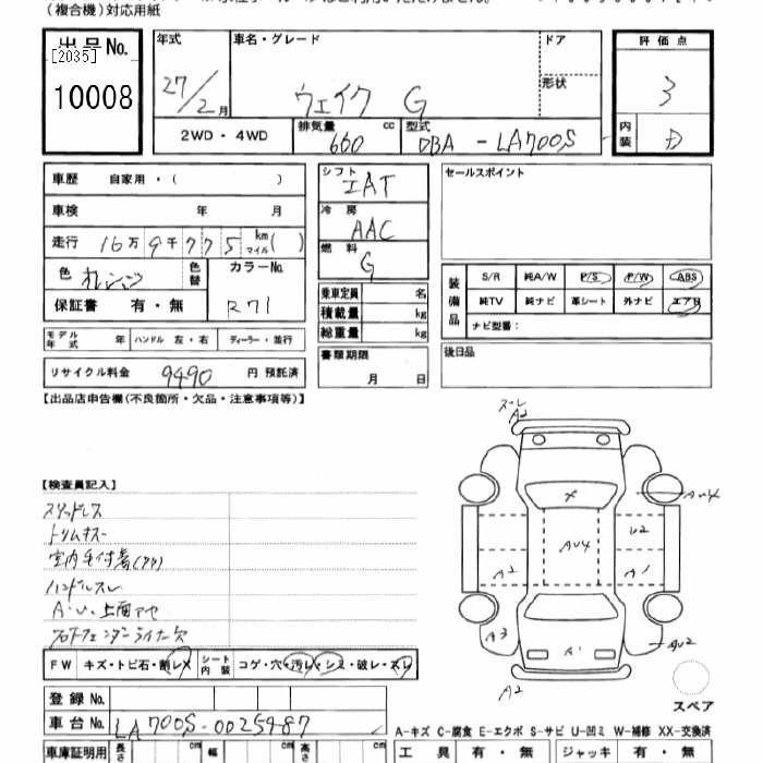 Daihatsu Wake, 2015 года - Лот№10008 ★3