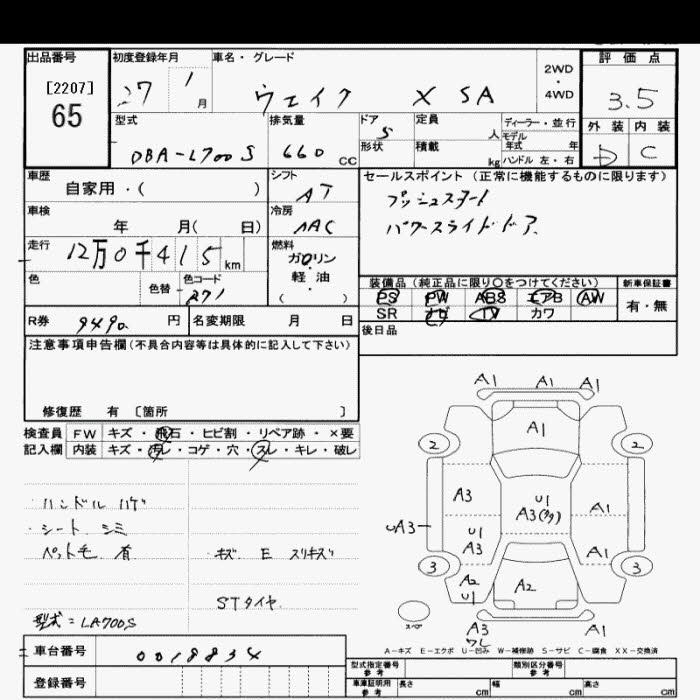 Daihatsu Wake, 2015 года - Лот№65 ★3.5