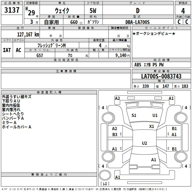Daihatsu Wake, 2017 года - Лот№3137 ★4