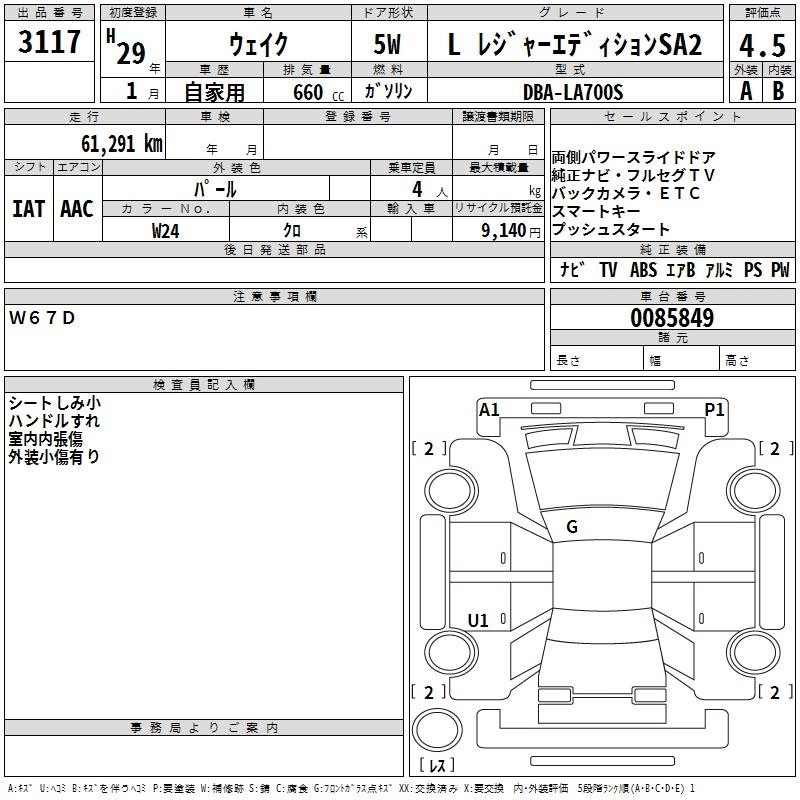 Daihatsu Wake, 2017 года - Лот№3117 ★4.5