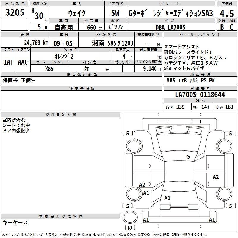 Daihatsu Wake, 2018 года - Лот№3205 ★4.5