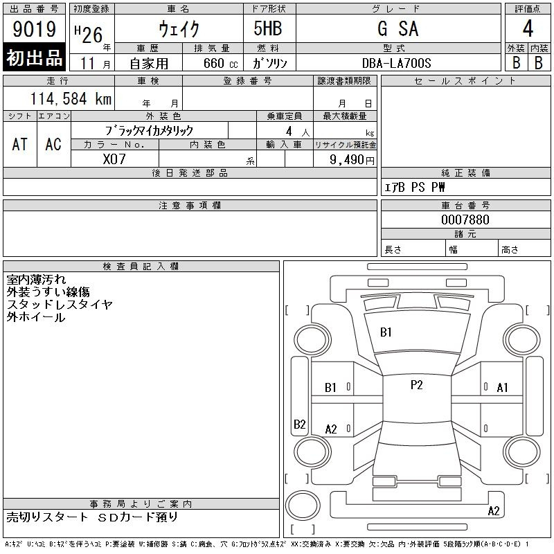Daihatsu Wake, 2014 года - Лот№9019 ★4