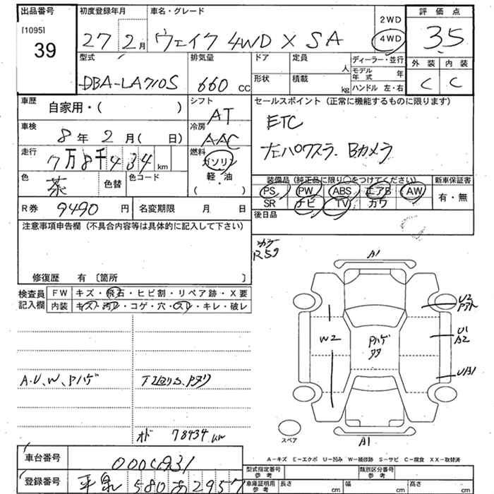 Daihatsu Wake, 2015 года - Лот№39 ★3.5