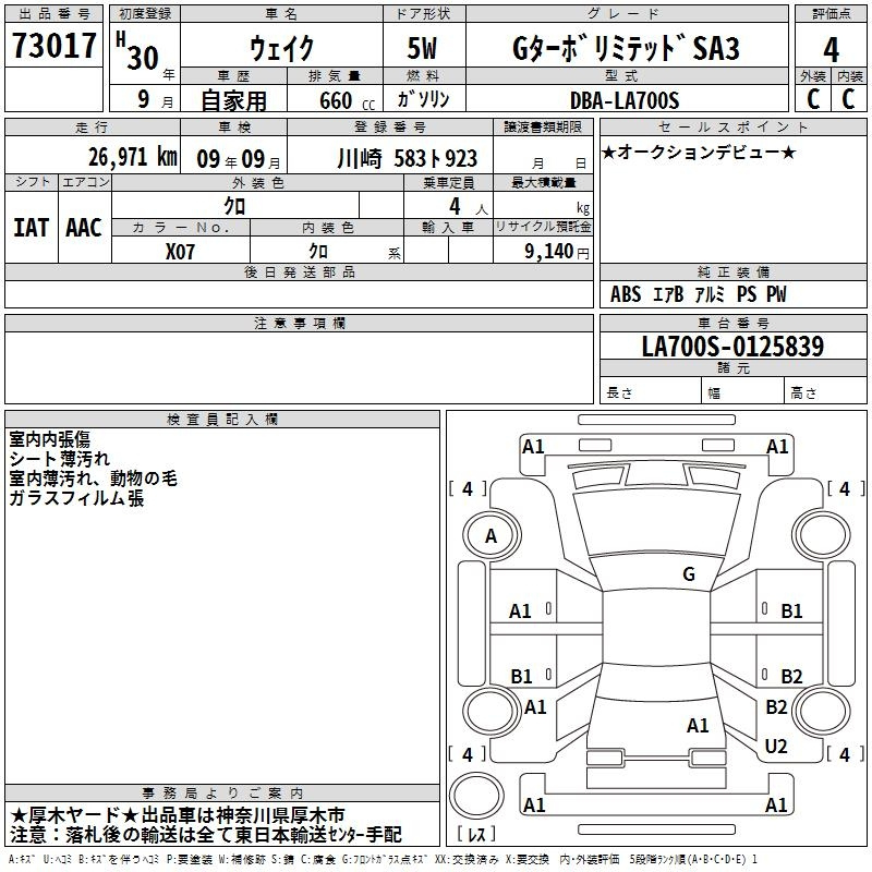 Daihatsu Wake, 2018 года - Лот№73017 ★4