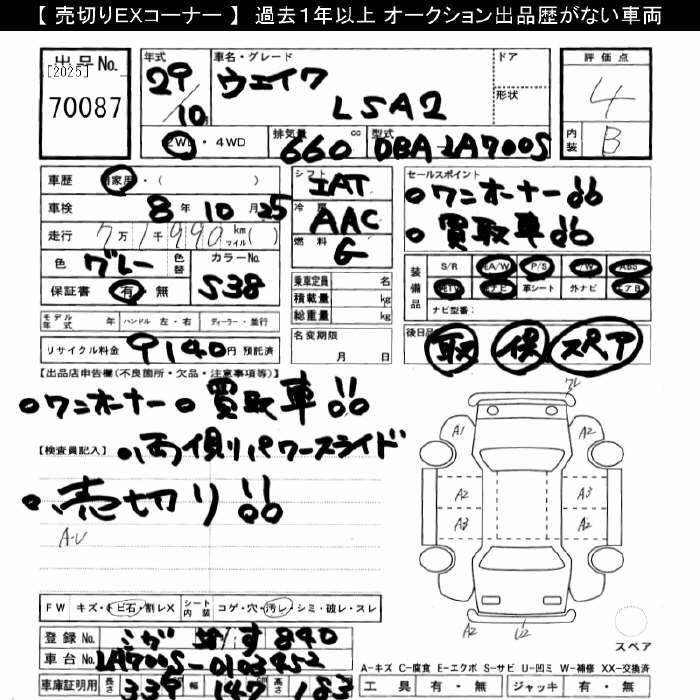 Daihatsu Wake, 2017 года - Лот№70087 ★4