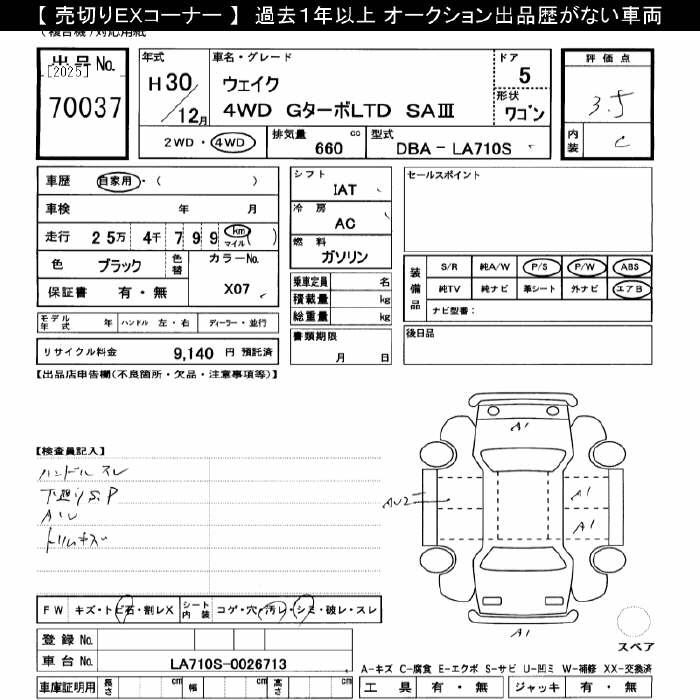 Daihatsu Wake, 2018 года - Лот№70037 ★3.5