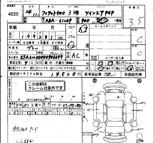 Fiat 500, 2012 года - Лот№4020 ★3.5