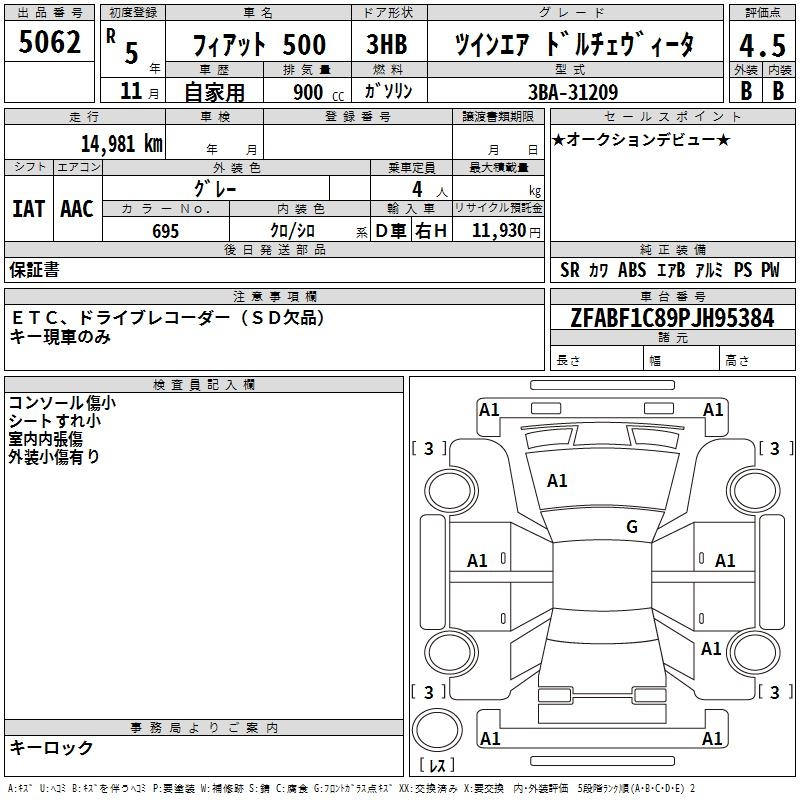 Fiat 500, 2023 года - Лот№5062 ★4.5