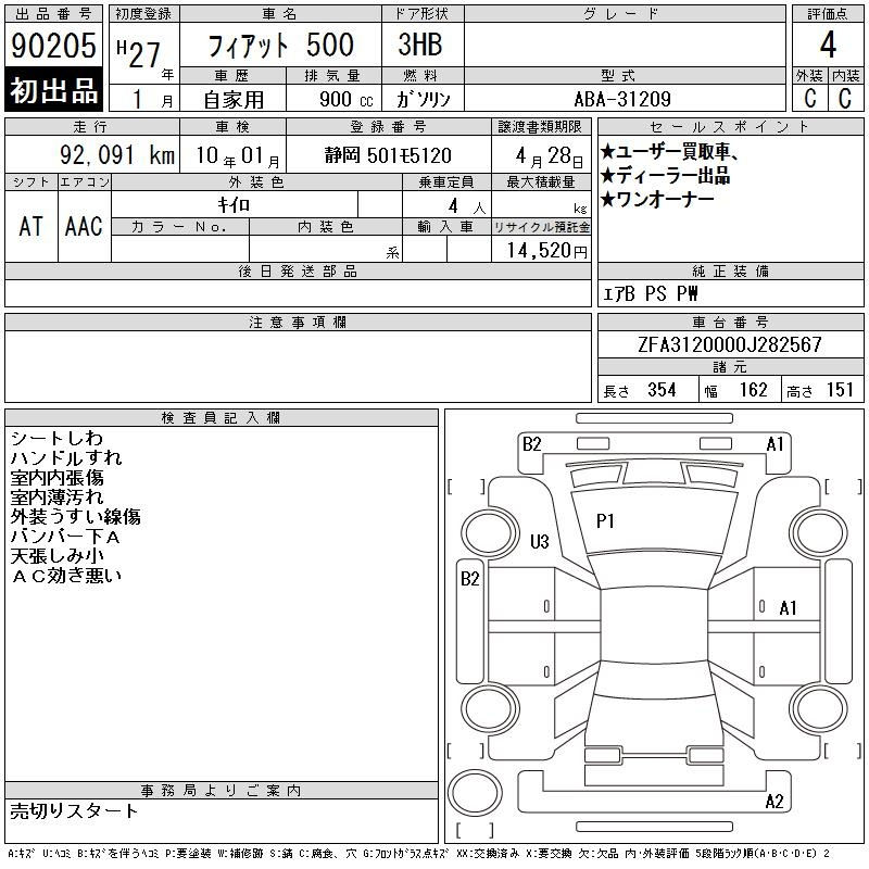 Fiat 500, 2015 года - Лот№90205 ★4