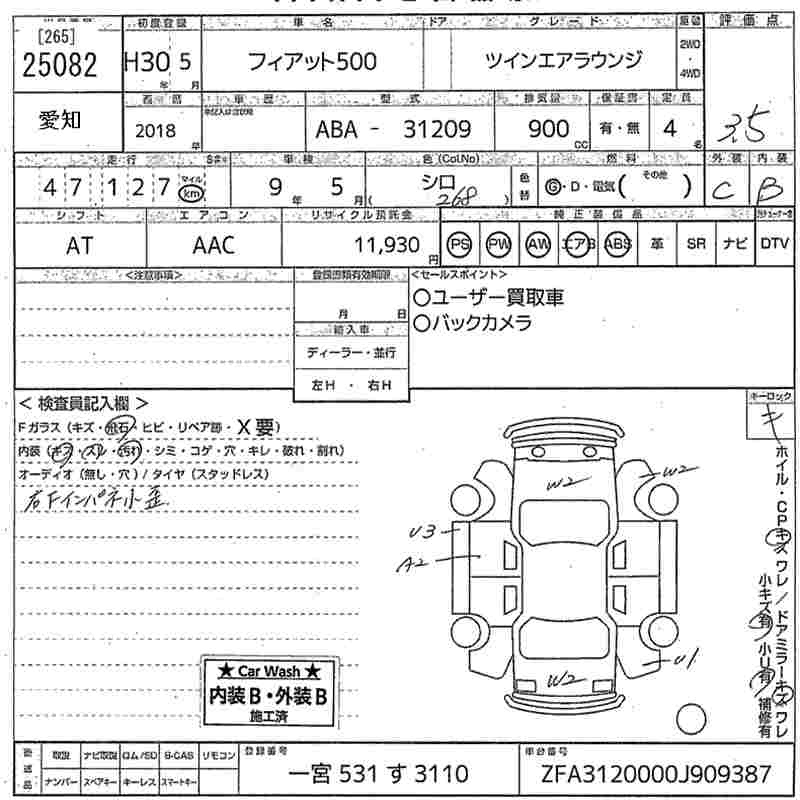 Fiat 500, 2018 года - Лот№25082 ★3.5