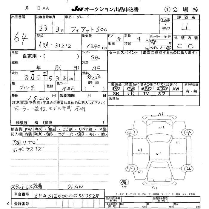 Fiat 500, 2011 года - Лот№64 ★4