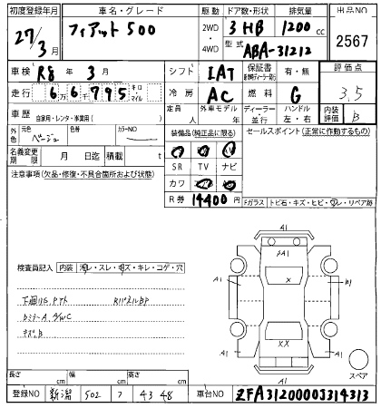 Fiat 500, 2015 года - Лот№2567 ★3.5