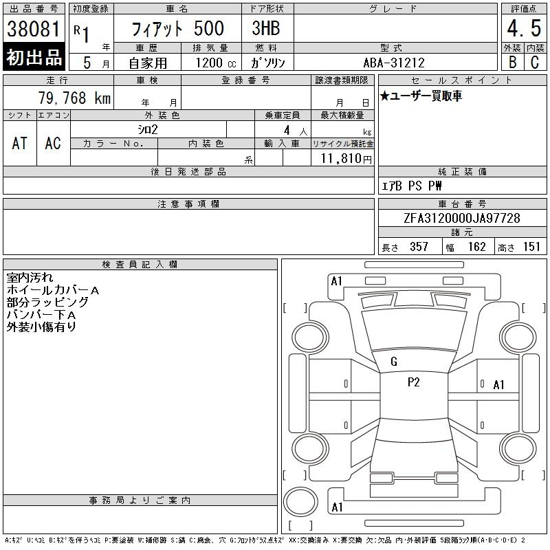 Fiat 500, 2019 года - Лот№38081 ★4.5