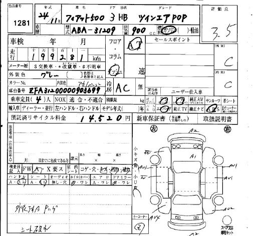 Fiat 500, 2012 года - Лот№1281 ★3.5
