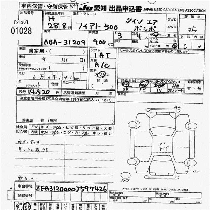 Fiat 500, 2016 года - Лот№1028 ★3.5